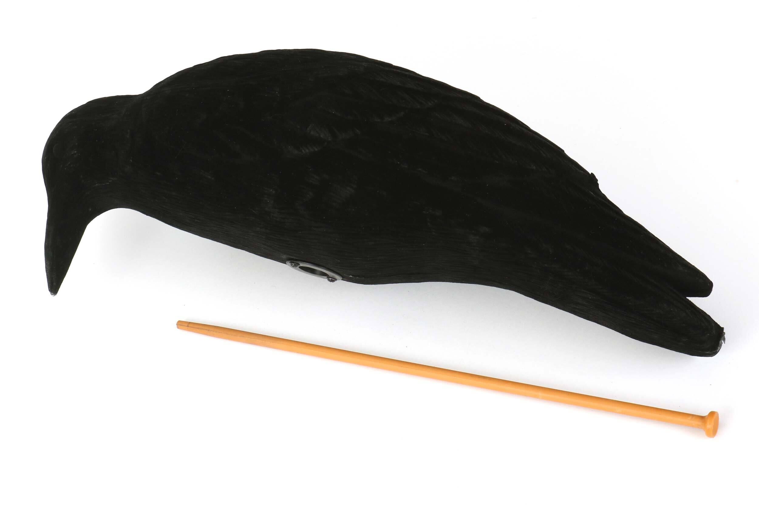 Die pickende beflockte Lockkrähe in XXL hat eine Länge von 50 cm und erweitert das Spektrum der Lockvögel-Varianten.