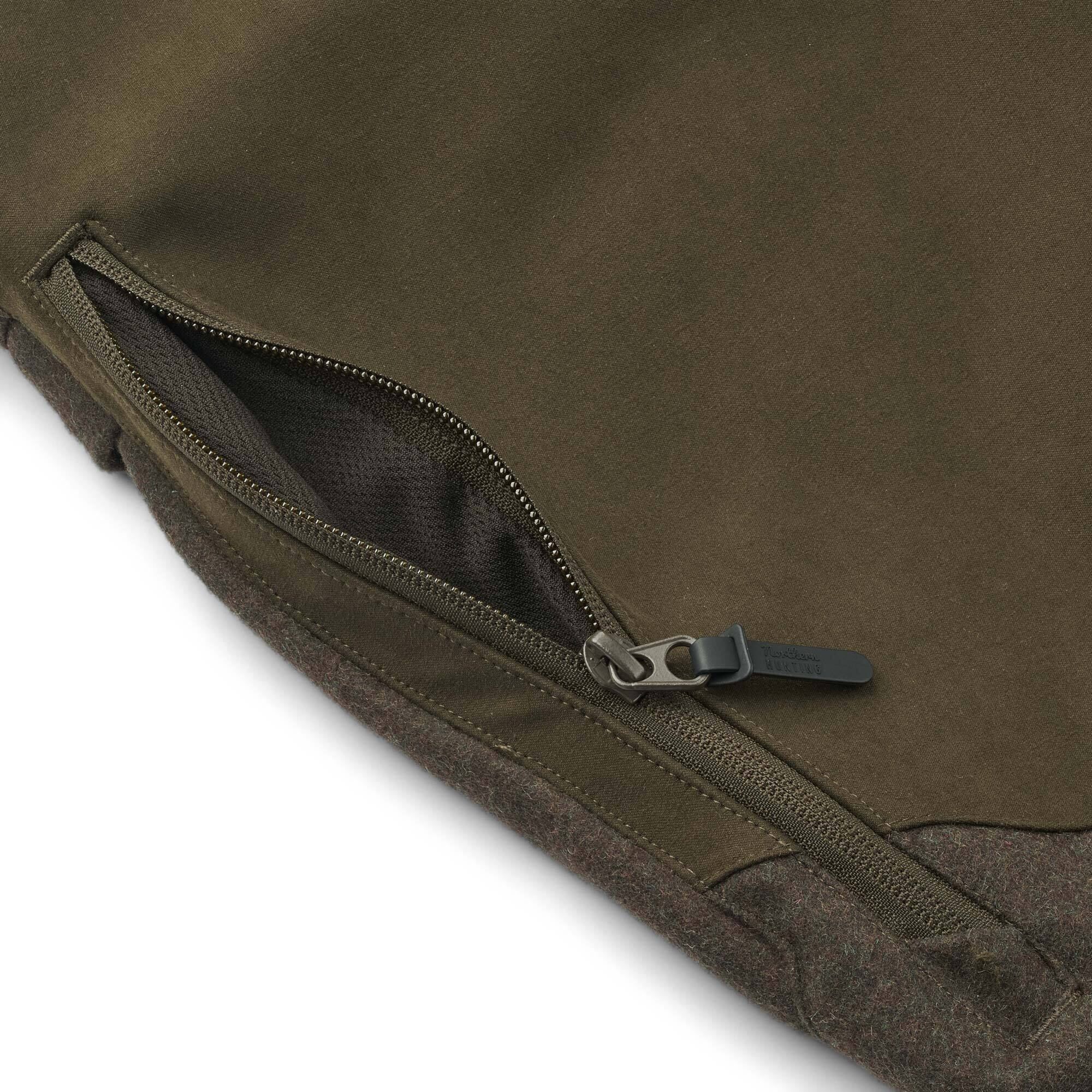 Die Asbjorn-Varg-Wollhose von Northern Hunting ist eine sehr robuste und strapazierfähige Jagdhjose. Die verwendete Addventex Eco-Membrane macht die Hose sehr atmungsaktiv. Da Wolle temperierend und feuchtigkeitsabtransportierend ist, wird mit dieser Hose ein überragend gutes Körperklima erreicht, darüber hinaus unterstzützt durch zusätzliche Belüftungsreißverschlüsse mit Netzfutter. Die Wollhose ist wasserabweisen (PFC-frei) und an den entscheidenden Stellen mit wasserdichter Verstärkung versehen.Sie kann optimal mit der Asbjorn-Jorg-Wolljacke zu einem passenden Set kombiniert werden.