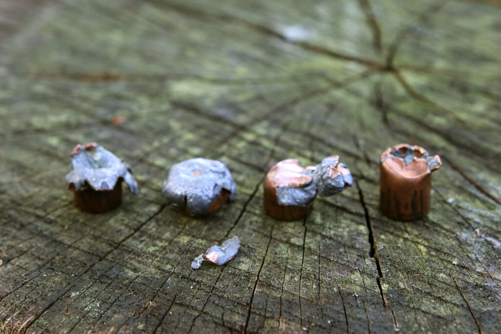 Dadurch sprechen die Geschosse zwar in der Regel schnell an und durch die zähe Verbindung mit dem reinen Kupfermantel haben sie fast immer auch eine gute Tiefenwirkung. Die einzige Schwäche dieses Geschosstyps zeigt sich bei Treffern auf/durch harte Materialien, die dazu führen können, dass die Hohlspitze nicht wie gewünscht aufpilzt. Einige der aufgepilzten Projektile zeigen diese untypische Deformation, die dann zu weniger Energieabgabe und/oder Tiefenwirkung führen kann.